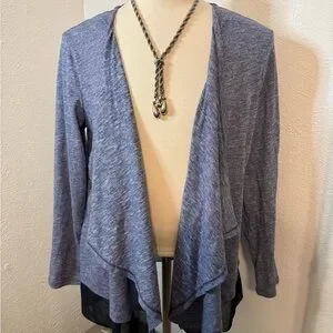 💙 Ann Taylor Whisper Luxe Cascading Duster Cardigan – Marled Blue/Gray – EUC 💙B3