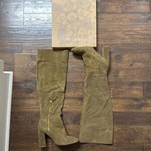 Free People Boot Liberty Heel size 41 color taupe suede 4in heels 23in approximately from foot to top of boot leg. These boots are definitely above knee