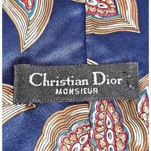 Christian Dior Monsieur Men's Silk Tie Blue /Brown Paisley Design Made Italy 246