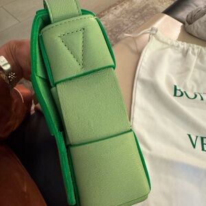 Bottega Veneta Cassette crossbody leather bag , mint green on the outside and Parrot green on the inside , adjustable strap , gorgeous !! Comes with dust bag and authenticity card