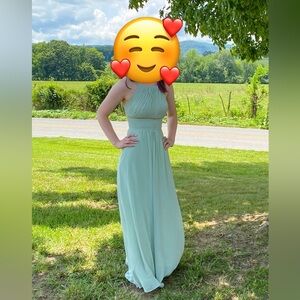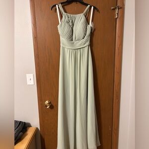 Azazie Gaia bridesmaid dress. Dusty Sage color. Worn once for about 6 hours and in great condition. Custom size dress, see measurements below.