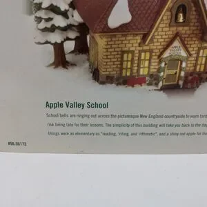 Dept 56 Apple Valley School New England Village #56172 1996-2008. Box sleeve and styrofoam have damage.