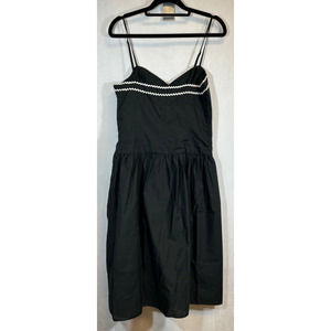 BETSEY JOHNSON Black w/White Rick Rack Trim Sun Dress - 6 - EUC Made in USA A37