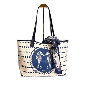 BRIGHTON UNDER THE SEA CANVAS SEAHORSE ANCHOR SCARF NAUTICAL TOTE