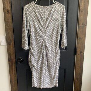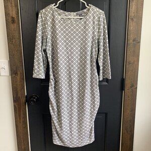 A Pea in the Pod | Plaid Ruched Dress, Medium MIDI Plaid Maternity Dress Stretch