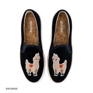Soludos Navy Velvet Slip On Llama Sneakers EUC Size 7