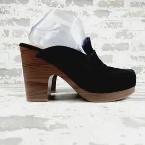 New Splendid Vina Black Suede Platform Slip On Clogs E101