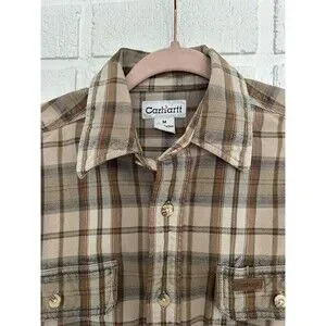 Carhartt Button Up Work Shirt Mens Medium Thick Heavy Cotton. Condition is Pre-owned.