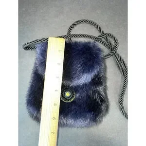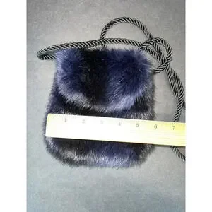 Vintage Christine Clarke faux fur mink purse crossbody satchel bag blue artsy