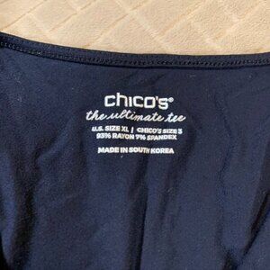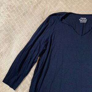 Chicos Womens XL T Shirt Dark Navy Blue 3/4 Sleeve V Neck Rayon Blend Stretch. No stains or holes.