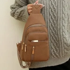Luxe Vegan Leather Zip up Crossbody Shoulder Bag