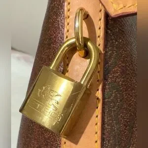 Vintage bag by Etro, in waterproof canvas, with iconic cashmere print. Leather trim. Top handle to carry by hand with the option of adding a shoulder strap (not included). Gold tone logo hardware. Two keys and padlock. Inner zip pocket, logo and tab with serial code and date. Peeling/cracking inside pocket, but no stickiness. Lined interior with lining in very good condition. Slight discoloration from signs of use. Residue on edges. Small ripping at corner seams in interior (see red circles). Signs of use on the handles and leather parts. The only crease on the bag is on the bottom, which is not seen when carried. I have seen several of these bags online with creases on the exterior. Perfect corners.