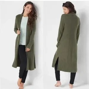 BAREFOOT DREAMS CozyChic Lite Catalina Long Cardigan Olive Green XS Petite