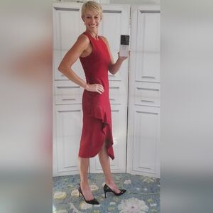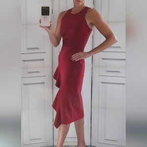 CINQ A SEPT Piper Ruffle Sheath Dress in Burgundy.