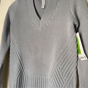 NWT Athleta Teton V-neck Sweater Blue Gray Knit Pullover size XS