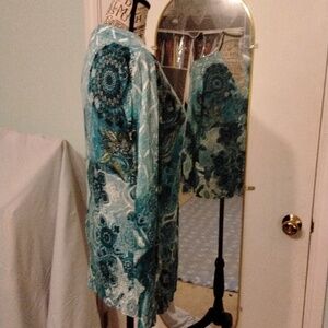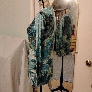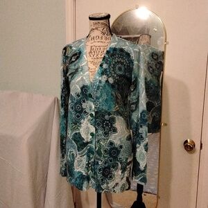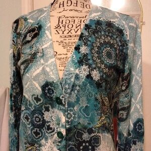 Women's EUC Chico's blue paisley long sleeve button front Cardigan Sz 0 (XS)