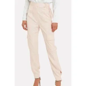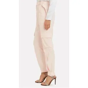 Jonathan Simkhai utility cargo pants in light pink. Viscose Rayonne blend with 100% poly lining. Size 0. Great used condition. One noticeable flaw is a very light stain/mark on back leg (shown in last photo)... this can probably be removed with dry cleaning. Zipper, eyelet, and attached belt closer at waist. Snap buttons at ankles.