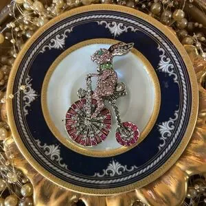 Bunny Riding a Bike Rhinestone Brooch. Measurements shown in photos. In excellent, like-new condition. Smoke free home.