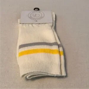 Step up your sock game with these stylish Urban Outfitters socks. Featuring a clean white base with eye-catching stripes, these socks are perfect for any occasion.