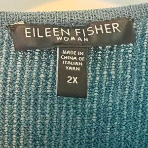 Eileen Fisher Teal Wool Crepe Lightweight Open Front Cardigan 2X