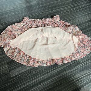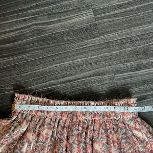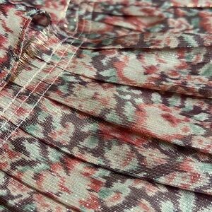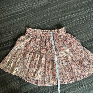 This metallic, ruffle skirt is a size small. It has a raw, frayed accented waistband and one ruffle as well. This skirt was made to look this way-not damaged. 🌟Perfect for all your upcoming holidays!🎄