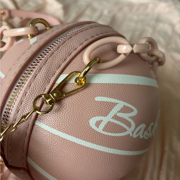 Pink and white basketball purse.