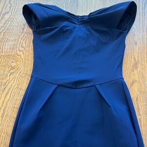 NWT Chiara Boni Dagmara Cap Sleeve Sweetheart Neckline Long Dress Navy Size 2