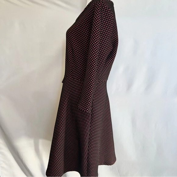 NY Collection A Line Polka Dot Dress Black Pink 3/4 Sleeve Back Zip Size Medium