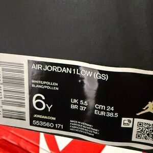 Nike Air Jordan 1 Low White Pollen Kids Sneakers - SZ 6 Y
