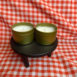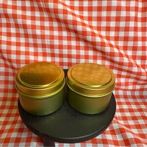 Handmade 4oz golden waffle scented candle and a 4oz chocolate sweet orange scented candle made with beeswax in containers with lids. NEW