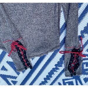 Free People Mountaineer Black Gray BOHO TIE CUFF KNIT SHIRT Top sz M