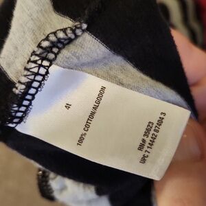 Super cute, black and gray striped shirt. Features a big pink bow at the neckline, keyhole button back, ruffled hem. Nice condition.