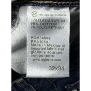 Elevate your wardrobe with these modern slim-fit blue jeans from AG Adriano Goldschmied. The Tellis collection features a 5-pocket design with a combination of zip and button closures, accented with the brand's logo. The jeans are made of a comfortable and breathable blend of polyurethane and cotton denim, in a medium wash that gives them a classic look. These jeans are perfect for any season, whether it's winter, summer, fall, or spring. They have a mid-rise fit with a slimming effect, and the straight leg style is versatile for any occasion. The inseam measures 34.5 inches, and the waist size is 32 inches. These jeans are machine washable and easy to care for, making them a great addition to any wardrobe.