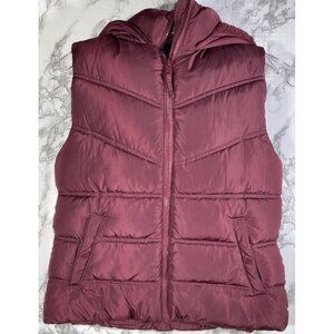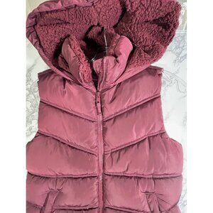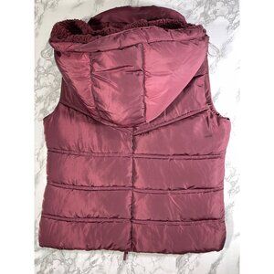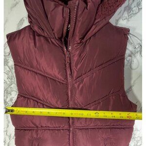 Aeropostale Puffer Vest With Hood & Sherpa Lining In Maroon For Women S