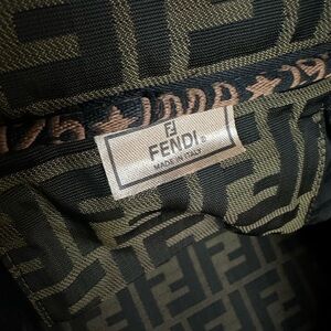 FENDI Zucca collapsible vanity top handle bag in great condition. While unzipped and open, the bag measures approximately 8” L x 6”H x 5.75”D. It zips flat for storage. It is pre-loved so there are minor signs of wear but no rips, stains or tears. Comes with Fendi dustbag.