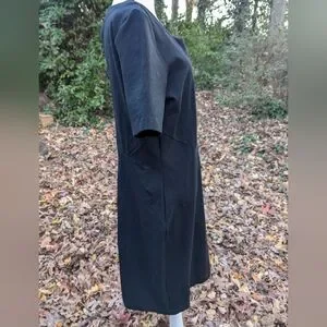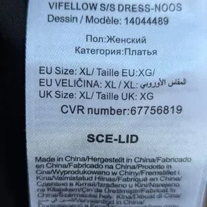 EUC. It hugs the figure, but is very flattering. Material outer fabric : 62% viscose, 32% nylon, 6% elastane