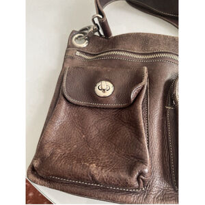 Vintage Roots Canada Villager Brown Leather Crossbody Bag pebbled soft leather. Some staining on backside see photos.