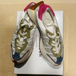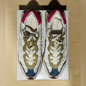 Mint condition! White with pink, gold, and blue glitter colors. If you are looking for designer sneakers, these would be the perfect sneakers at an affordable price.