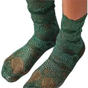 So lovely in lace, these feminine socks are featured in a lightweight, breathable fabrication and stretchy style with scallop edge trim, lace detailing allover, and a seamed toe.