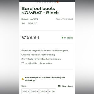 The boots are made from vegetable tanned leather and materials that also honour barefoot principles. You can easily blend our Kombats with your everyday style. Whether paired with your favorite jeans, a flowy dress, an oversized wool jacket, or a cozy casual outfit, these boots are designed to complement whatever fashion style defines you.