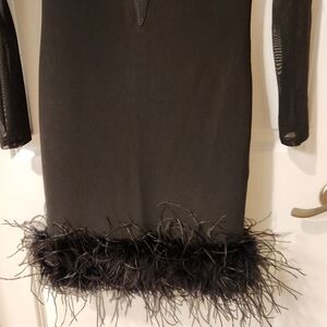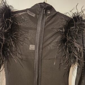 Akira new with tags bandage black dress with feather bottom and sleeves details