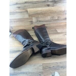 Frye Melissa Harness Black Brown Leather Inside Zip Up Riding Boots Womens 9B