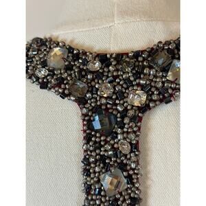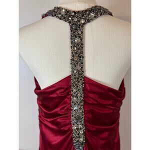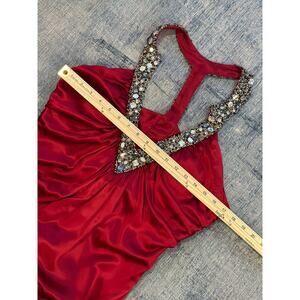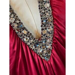 Vintage Y2K Marc Bouwer 100% Silk Maxi Dress Beaded V-Neck Red Cocktail Party 10