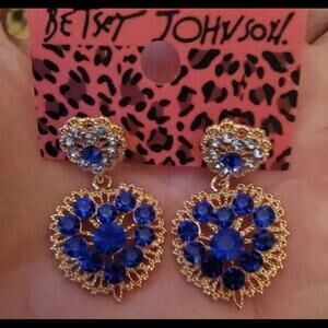XL dress by Poptart. 20.5" across underarms x 37" shoulder to hem. Preowned in excellent condition....itchy size tag gone. About knee length dress. With sweatheart top under royal blue lace. Black bottom. Sleeveless. Polyester. Some stretch. WITH vintage Betsey Johnson earrings never worn. Gold plated post earrings. 1 3/4".