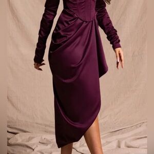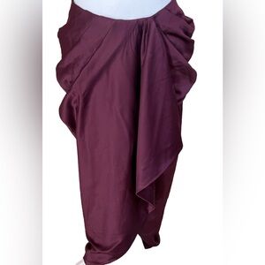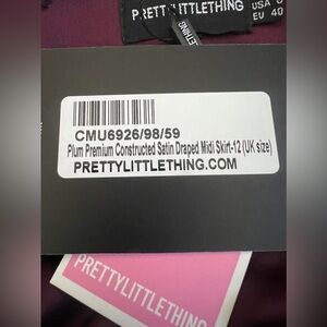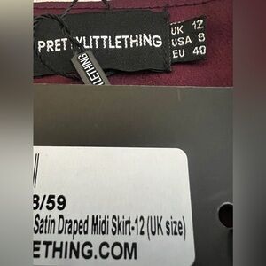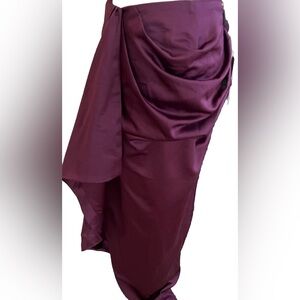 NWT PRETTYLITTLETHING PLT Plum Constructed Satin Draped Fancy Midi Skirt Size 8