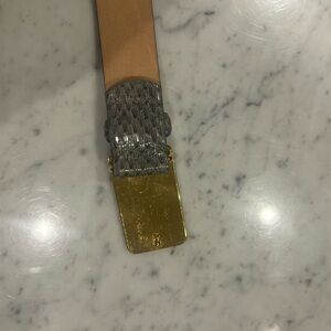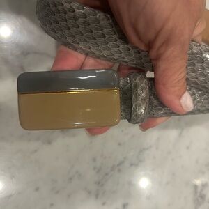 Women’s Carlisle snake/lizard skin belt. 1”wide x 37” long grey tone. Buckle is grey and beige enamel on gold tone. EUC