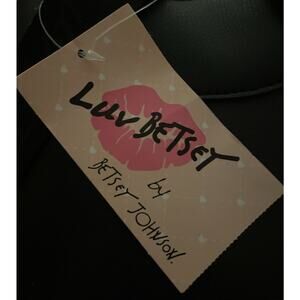 This has gold Betsy Johnson emblems on it and gold and black zippers! Front pocket is roomy for everyday items.