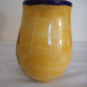 sort of a mustardy yellow with cobalt blue trim and rooster design