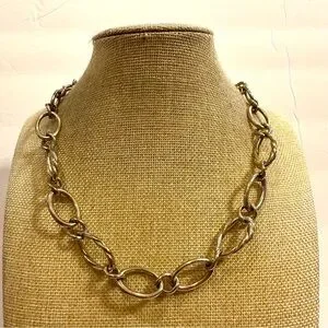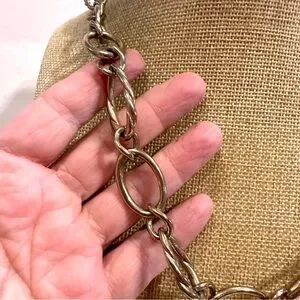 Monet necklace, gold tone open link chain- smooth & textured ( rope)