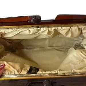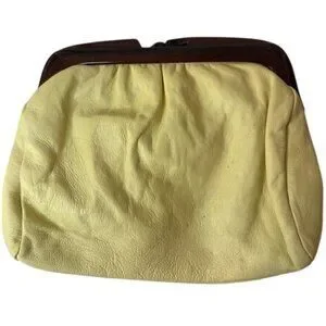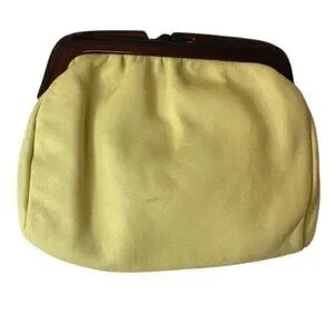 Vintage Yellow Leather Clutch Purse With Wooden Frame Made In Italy